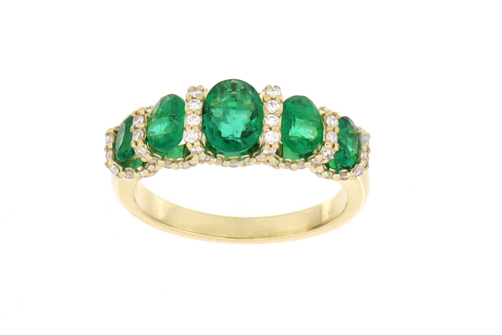 Anel Meia Aliança em ouro amarelo, 18k, 4,60grs, brilhante 0,38ct, esmeralda 1,43ct , ARO